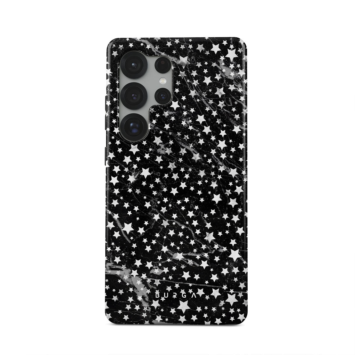 Samsung Galaxy S25 Ultra phone case is inspired by the sky above us. Here the charming star pattern meets with a trendy black and white marble. Add the unique combination to your wardrobe and transform your protective phone case into a fashion accessory.