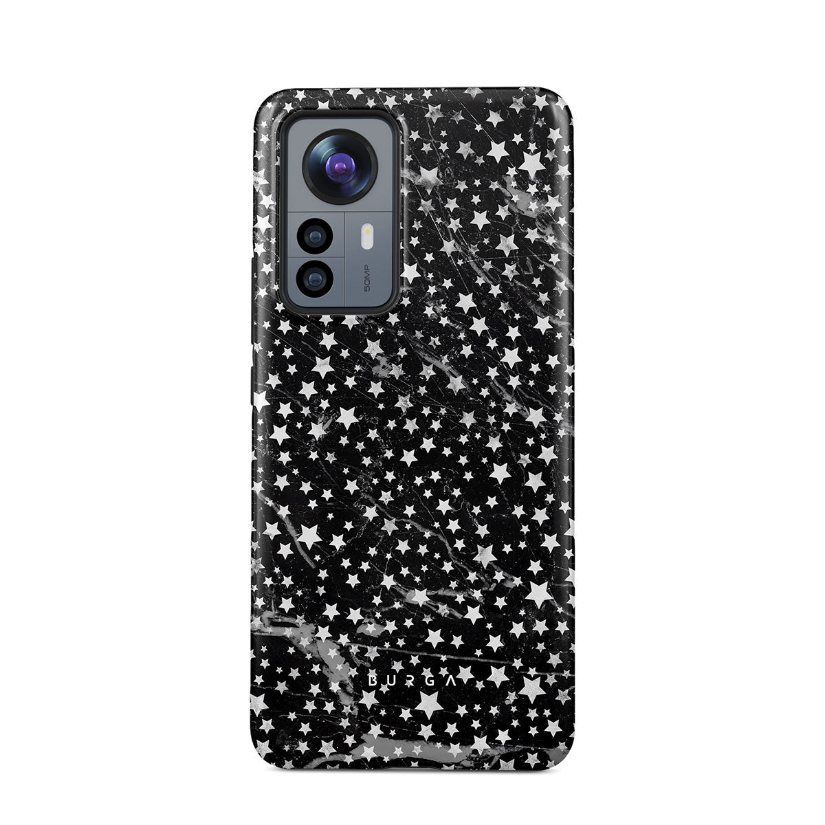 Xiaomi 12 phone case is inspired by the sky above us. Here the charming star pattern meets with a trendy black and white marble. Add the unique combination to your wardrobe and transform your protective phone case into a fashion accessory.