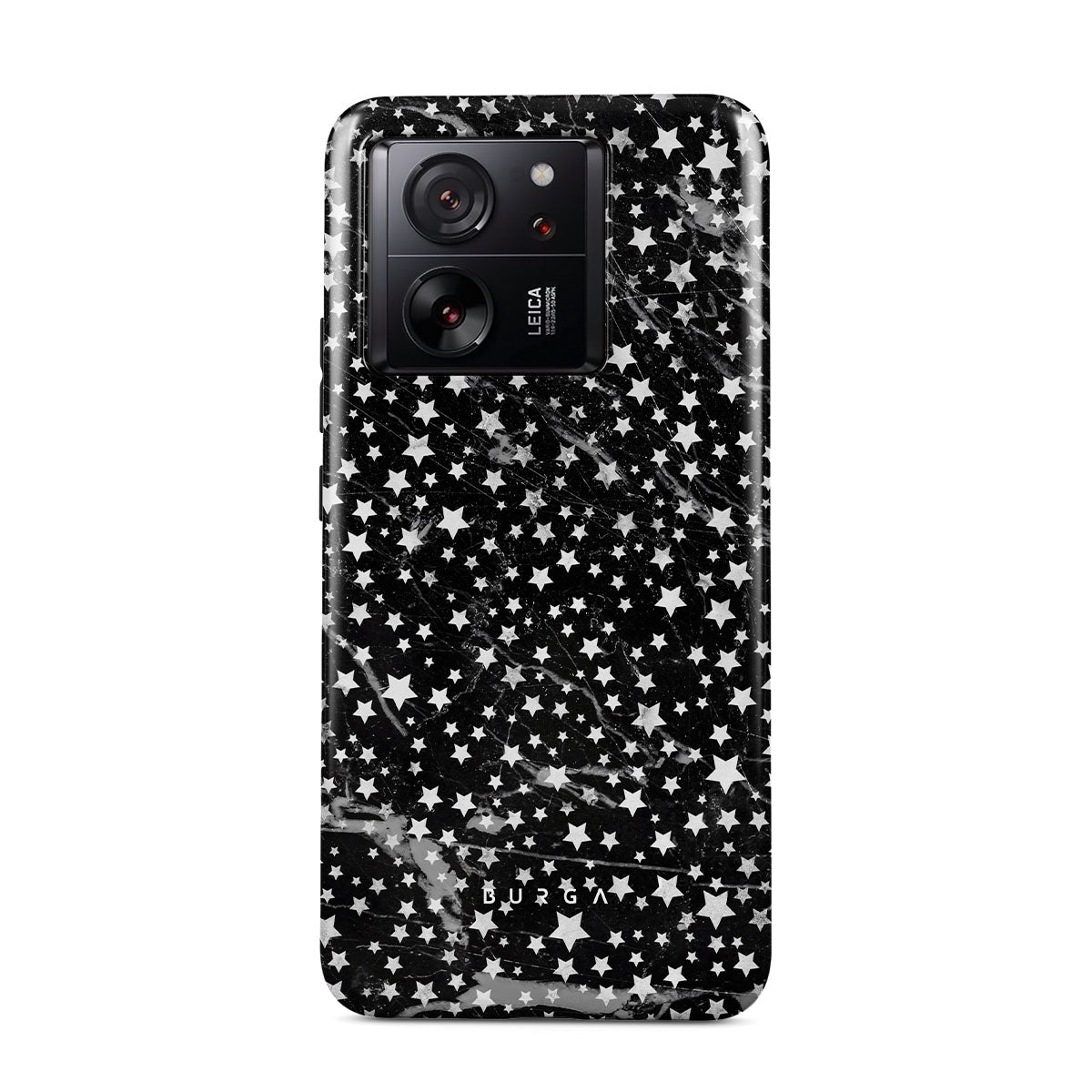 Xiaomi 13T Pro phone case is inspired by the sky above us. Here the charming star pattern meets with a trendy black and white marble. Add the unique combination to your wardrobe and transform your protective phone case into a fashion accessory.