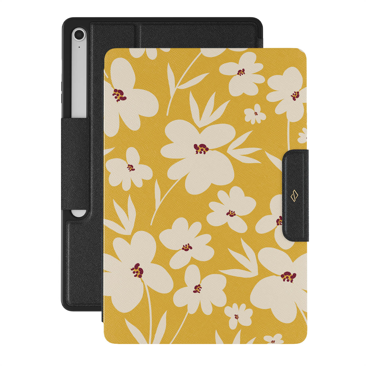 Full of fresh produce, warm rays of sunshine, and relaxing moments, our Sunday Market {Galaxy Tab Model} Samsung Galaxy Tab S10+ FE folio case encase all of this! The vintage mustard-yellow background with beautiful creme flowers will add that soft floral touch to your wardrobe while protecting your device from unexpected falls!