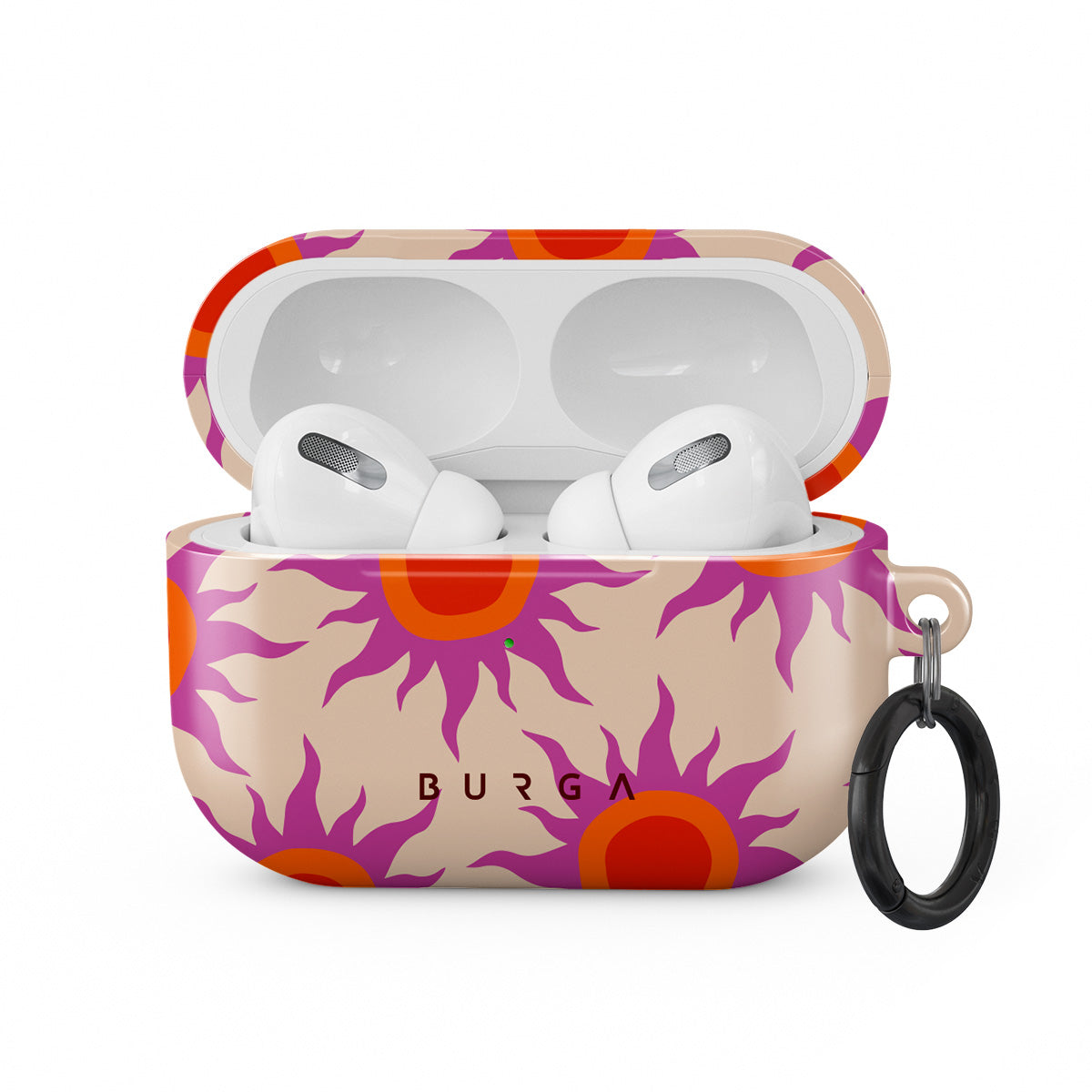 Discover the radiant serenity of the Sunset Glow design, a harmonious blend of soothing pastels and fiery suns. Vivacious viva magenta rays add a playful touch, perfectly balancing tranquility and dynamism. More than just a fashion accessory, this striking Apple Airpods Pro case cover mirrors your unique personality and zest for life.