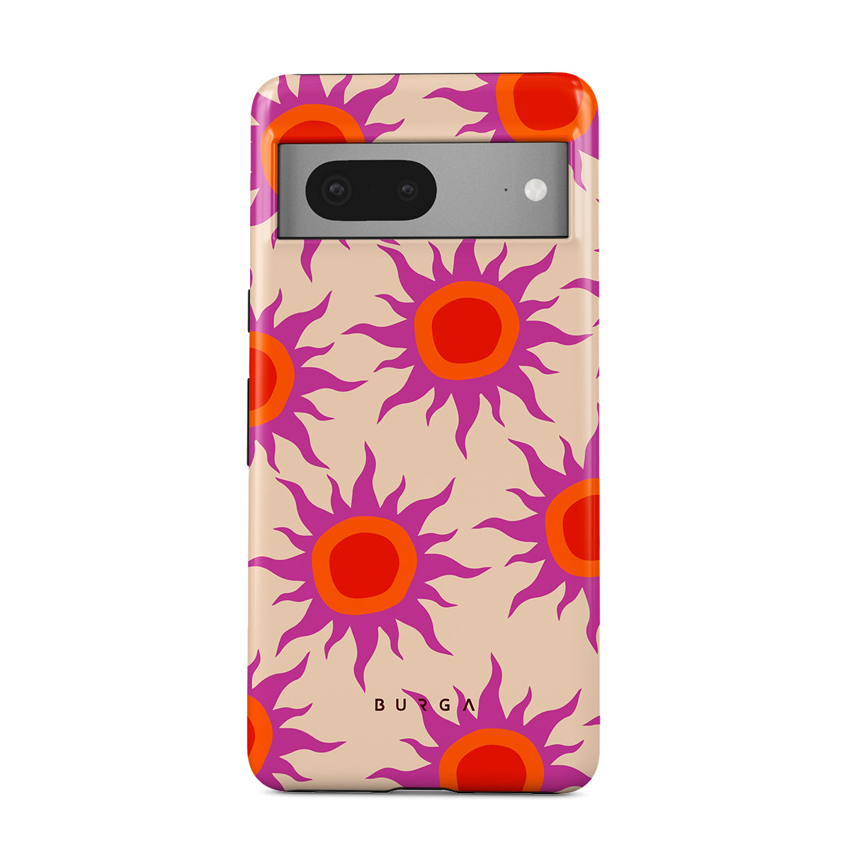 Discover the radiant serenity of the Sunset Glow design, a harmonious blend of soothing pastels and fiery suns. Vivacious viva magenta rays add a playful touch, perfectly balancing tranquility and dynamism. More than just a fashion accessory, this striking Google Pixel 7a phone case mirrors your unique personality and zest for life.