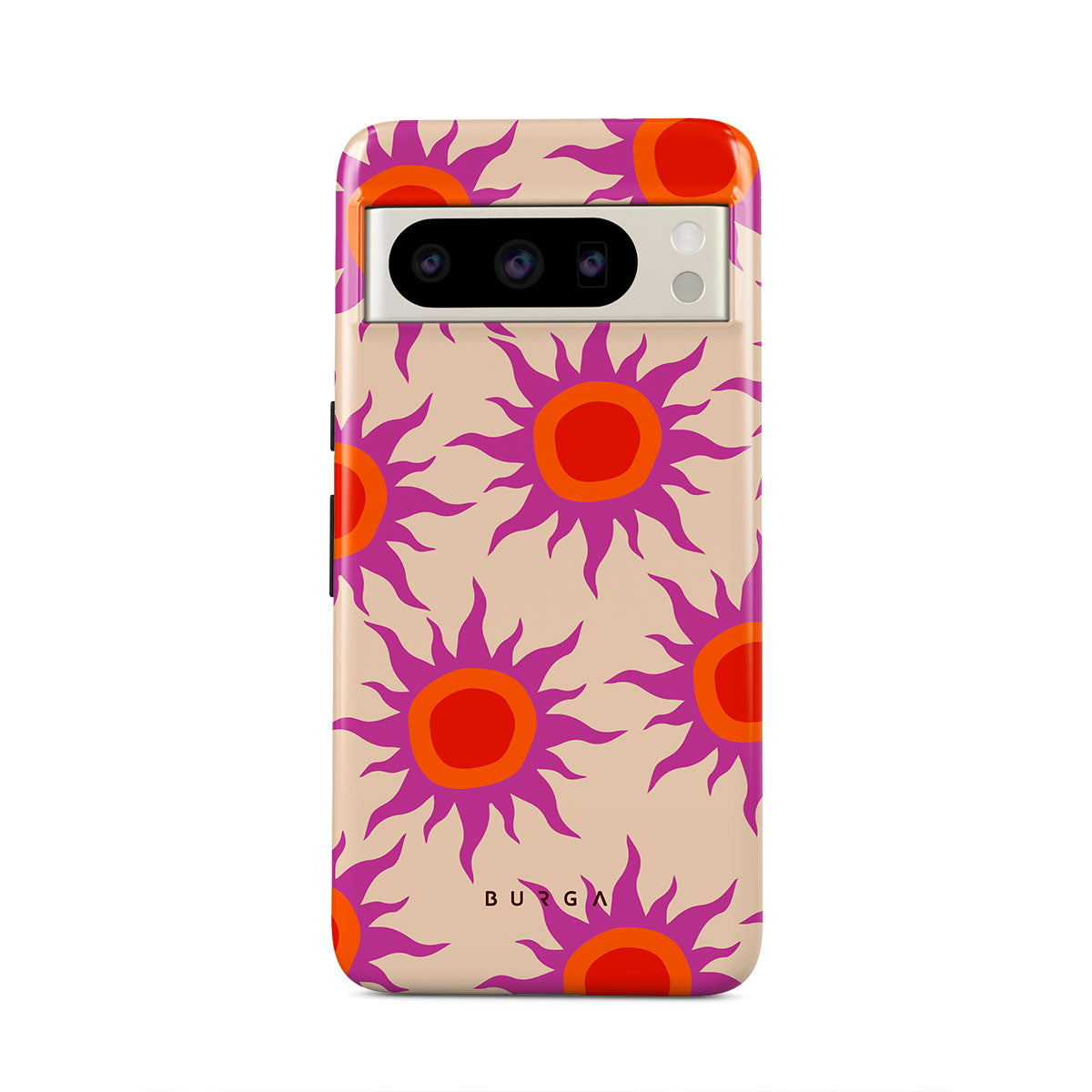 Discover the radiant serenity of the Sunset Glow design, a harmonious blend of soothing pastels and fiery suns. Vivacious viva magenta rays add a playful touch, perfectly balancing tranquility and dynamism. More than just a fashion accessory, this striking Google Pixel 8 Pro phone case mirrors your unique personality and zest for life.