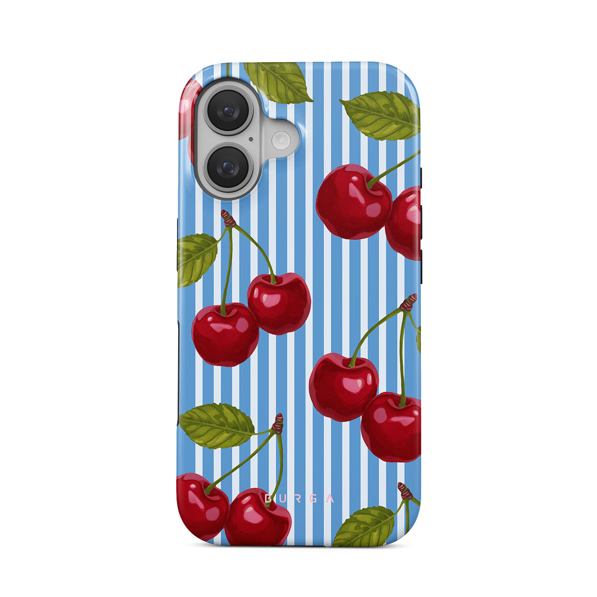 Cherries dangle like earrings from blue skies, a fun reminder of that first bite of summer, juicy and bursting with laughter. Meet our Sweet Moment iPhone 16 phone case design.