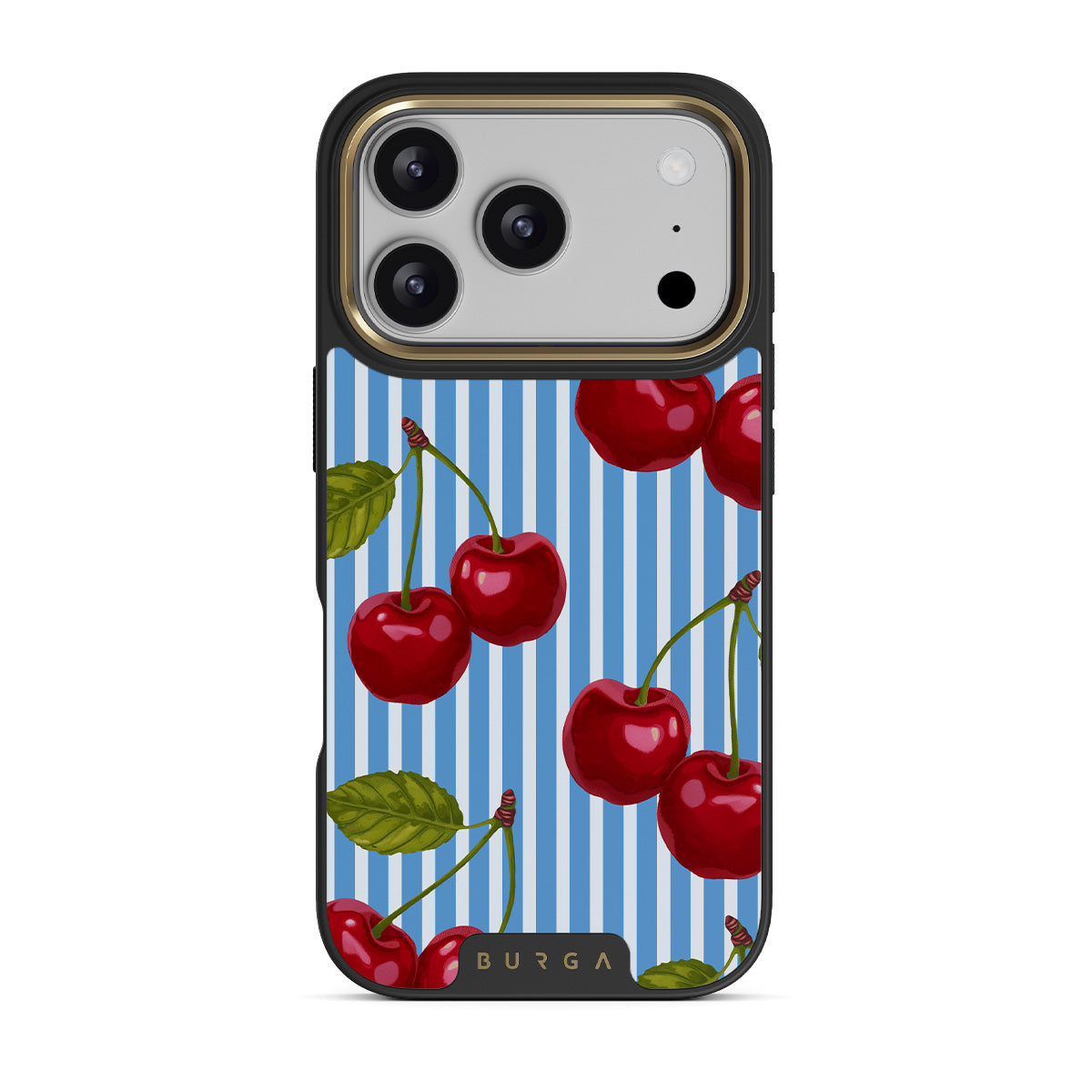 Cherries dangle like earrings from blue skies, a fun reminder of that first bite of summer, juicy and bursting with laughter. Meet our Sweet Moment iPhone 17 Pro phone case design.