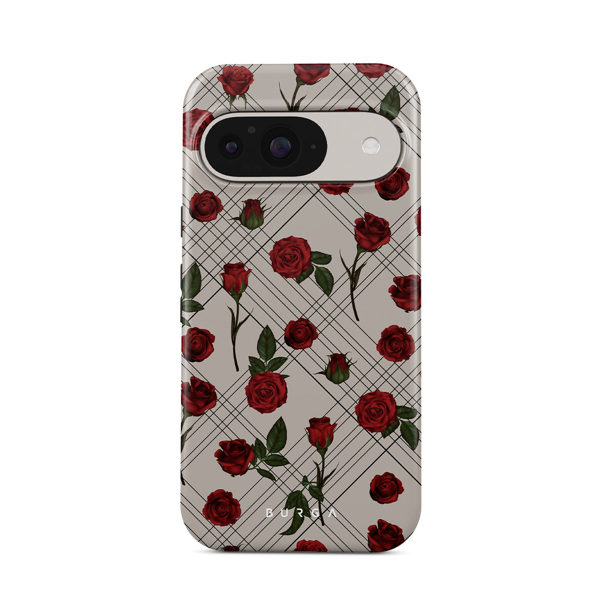 Embrace the subtle rebellion of our Sweet Sin Google Pixel 10 Pro XL phone case design. On a muted nude-gray canvas, scattered small red roses hint at passions hidden beneath the surface. A design that balances the delicate with the daring. Crafted for those who find beauty in the unexpected and wear their edge with elegance.