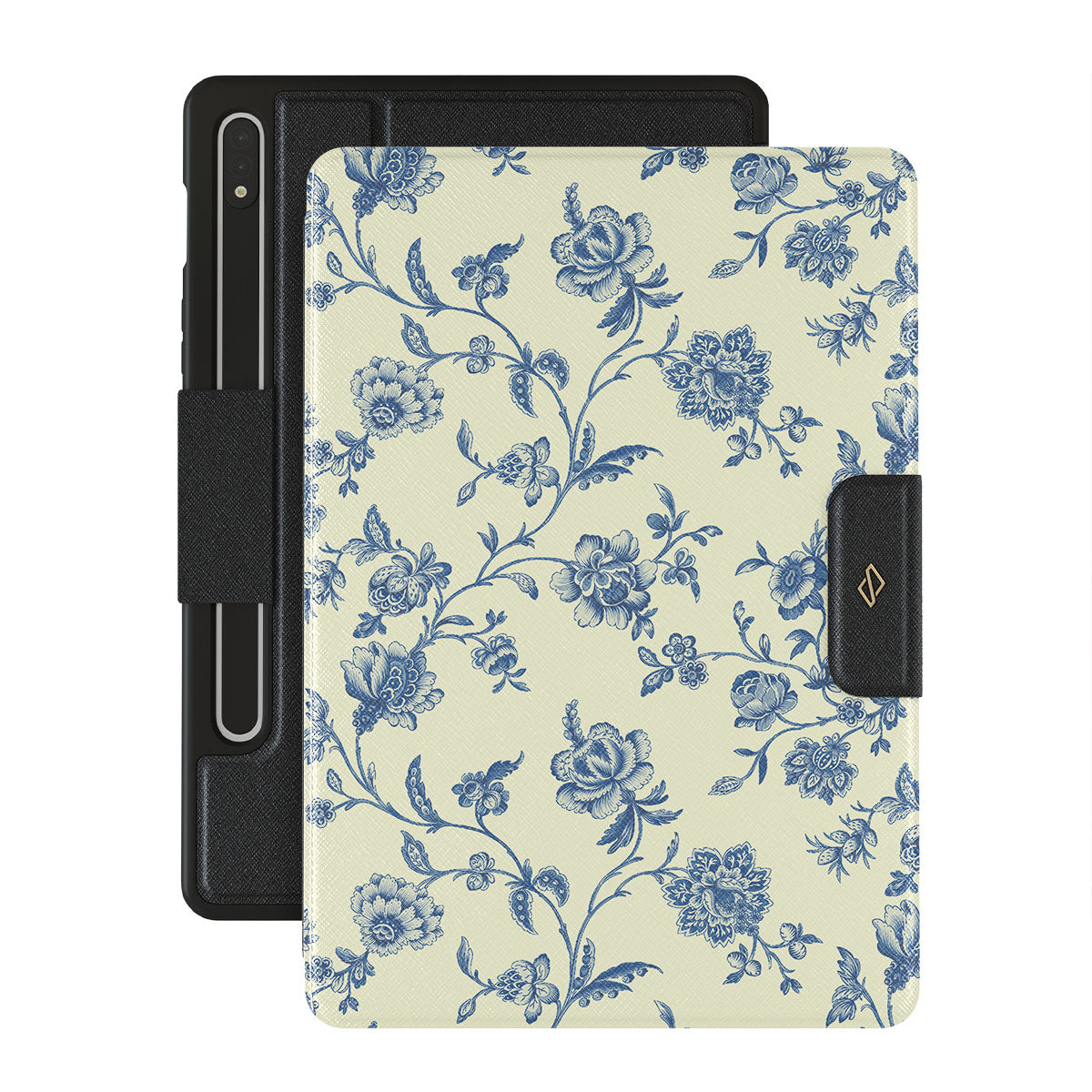 Hey, Sweetheart, here's a style secret: vintage blue flowers for that old-school charm. This Samsung Galaxy Tab S9+ FE folio case design is perfect when you want to be sweet yet effortlessly cool.