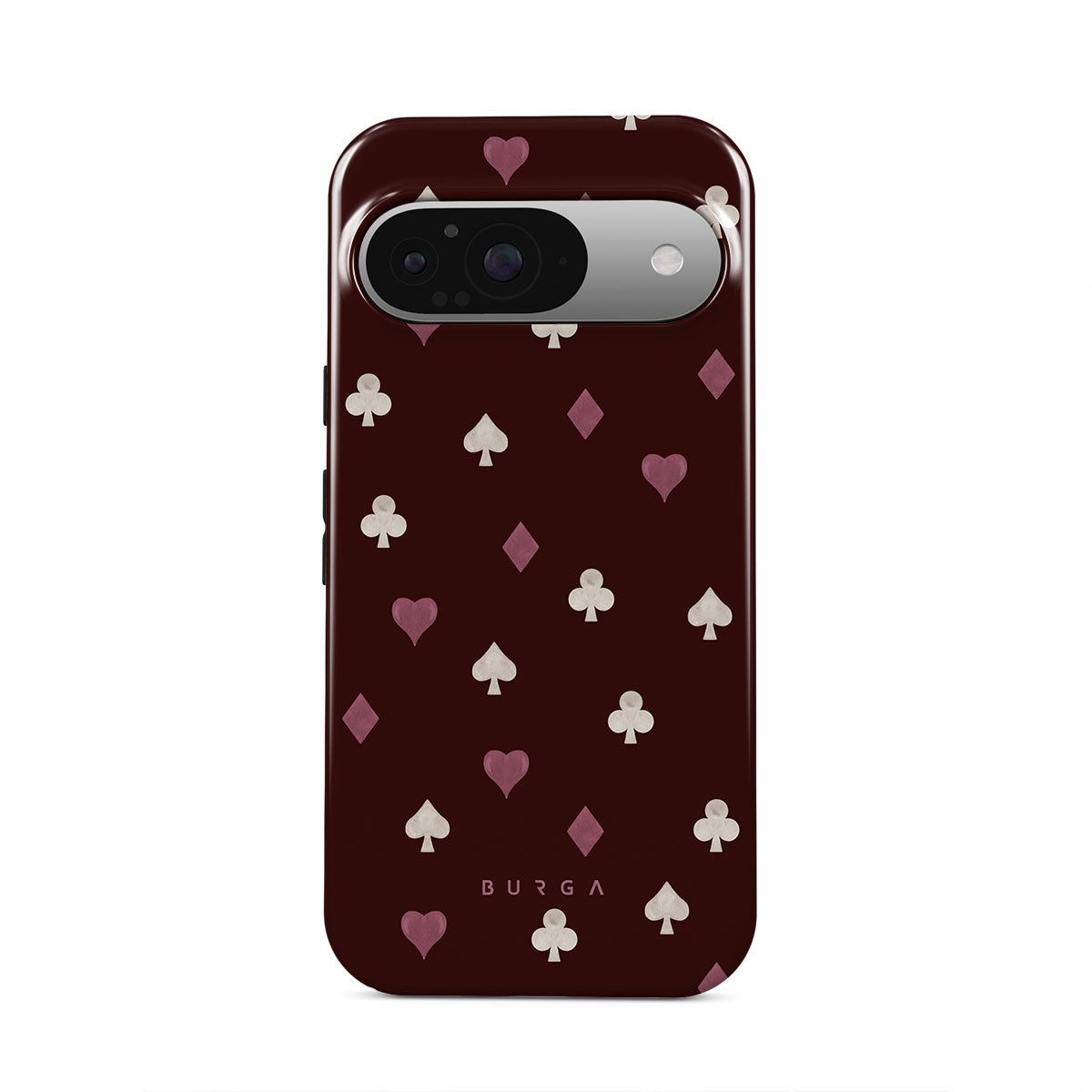 Nothing is as it appears. Hearts, clubs, diamonds, and spades—stacked in your favor or playing against you? This Google Pixel 9 phone case design features a rich burgundy background and minimalist suits that make for a game where the rules are constantly shifting.