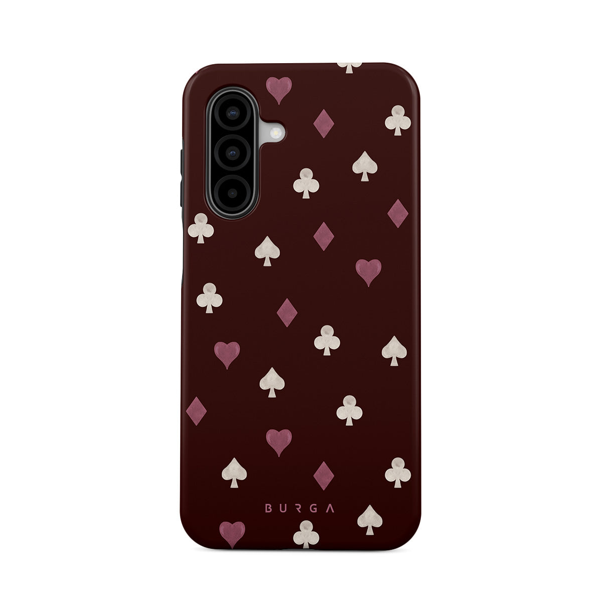 Nothing is as it appears. Hearts, clubs, diamonds, and spades—stacked in your favor or playing against you? This Samsung Galaxy A17 phone case design features a rich burgundy background and minimalist suits that make for a game where the rules are constantly shifting.