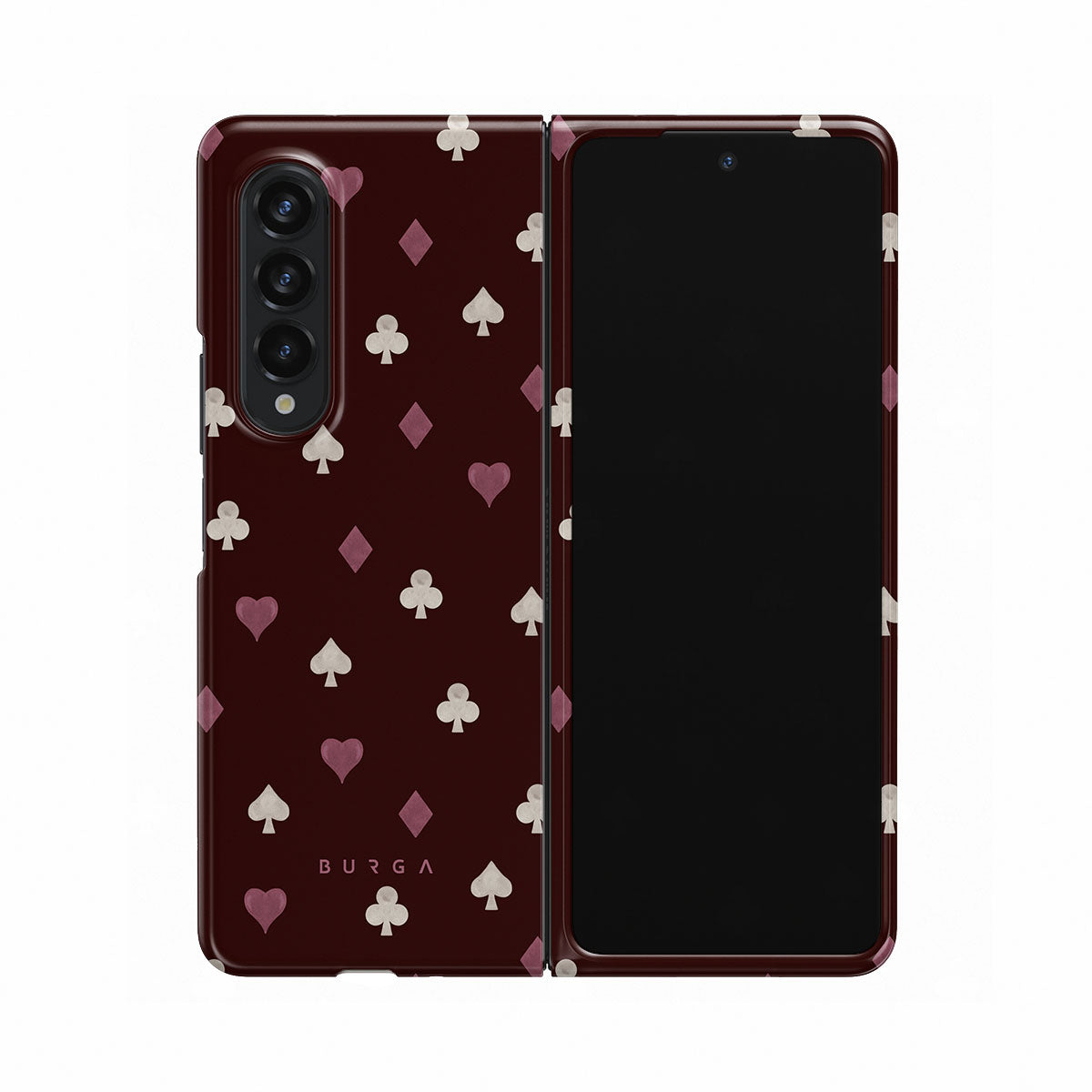 Nothing is as it appears. Hearts, clubs, diamonds, and spades—stacked in your favor or playing against you? This Samsung Galaxy Z Fold 3 phone case design features a rich burgundy background and minimalist suits that make for a game where the rules are constantly shifting.