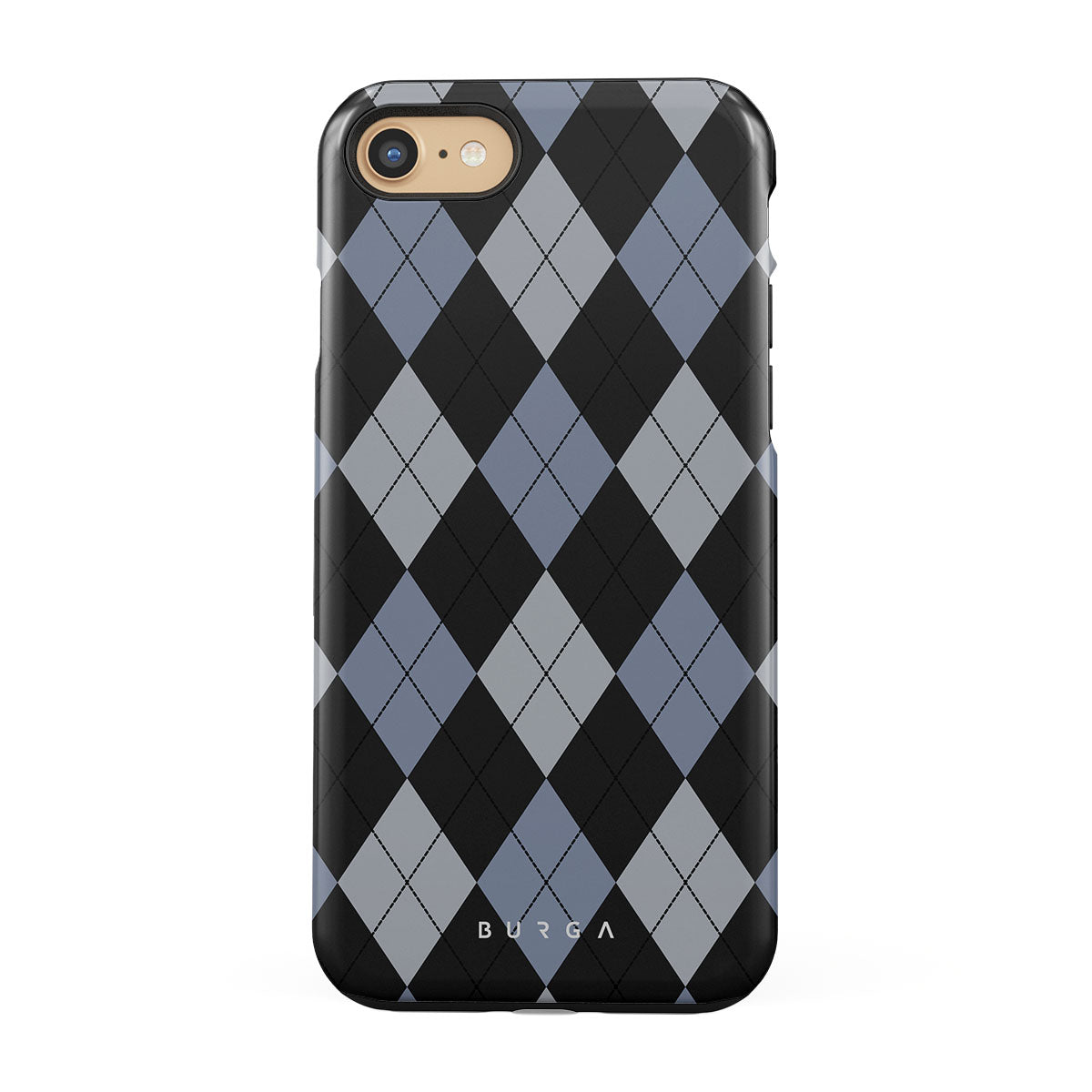 Discover our Trouble iPhone SE (2022) phone case design—a classic argyle pattern featuring stark black diamonds that seamlessly blend with two distinct shades of blue. Made for those who respect the classics but aren't afraid to disrupt the norm.