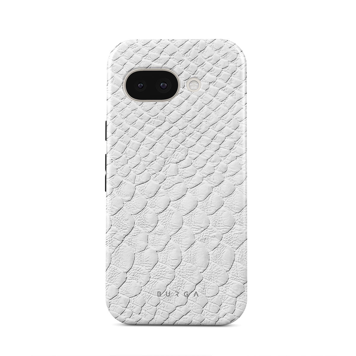 Glacial Desert Google Pixel 9a phone case features snakeskin design in glacial white color. The dangerous animal print will add confidence and a touch of luxury to your style while transforming your phone into a fashion accessory.