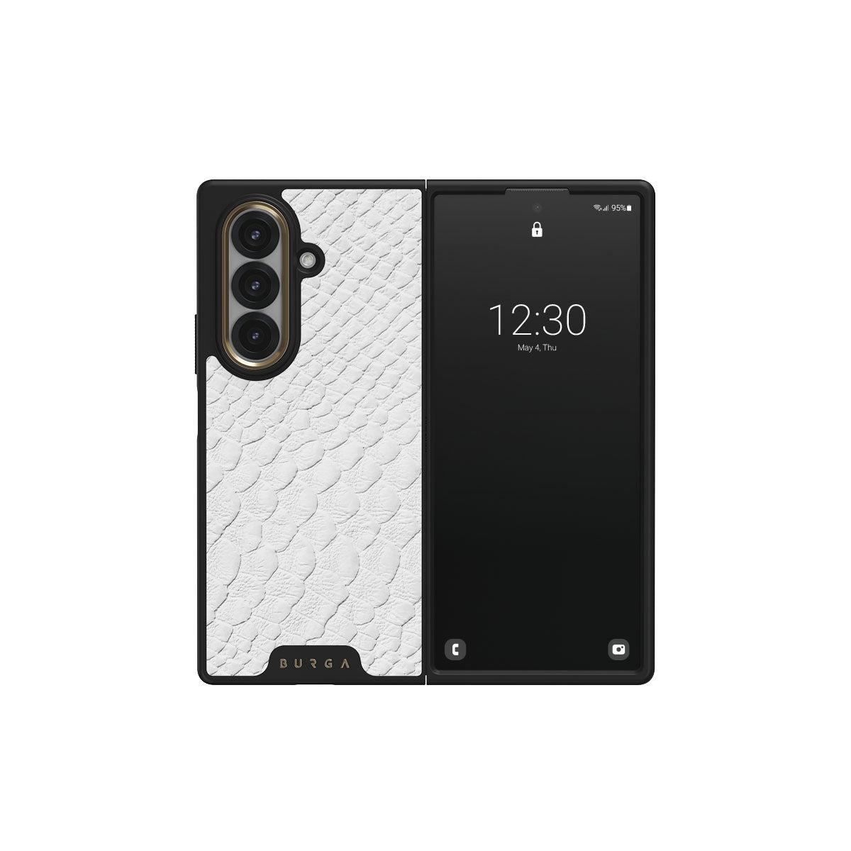 Glacial Desert Samsung Galaxy Z Fold 7 phone case features snakeskin design in glacial white color. The dangerous animal print will add confidence and a touch of luxury to your style while transforming your phone into a fashion accessory.
