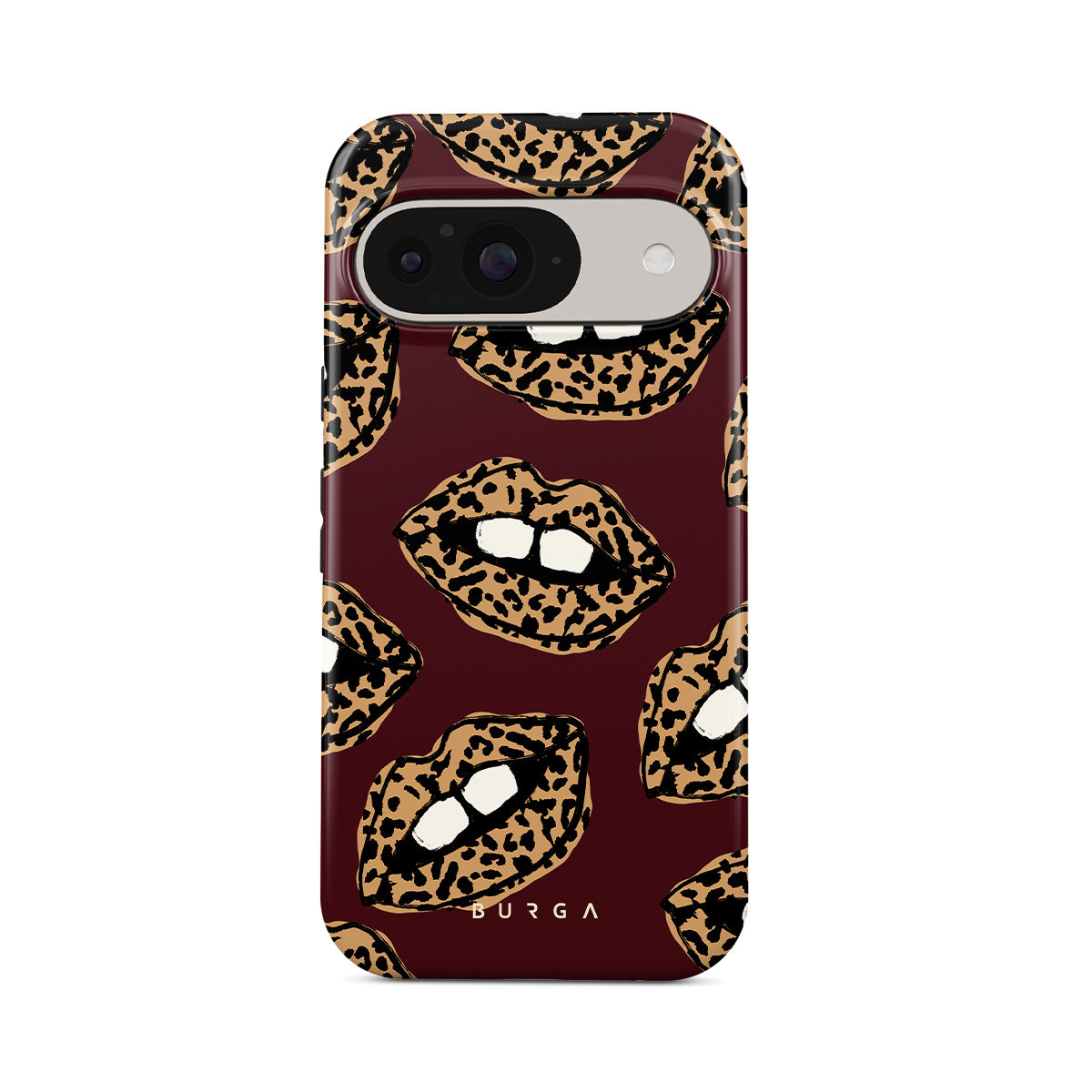 This design features: leopard print, lips, open lips, colored lips