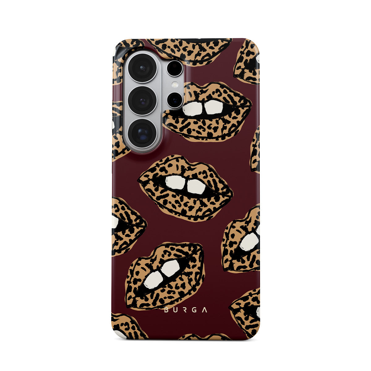 This design features: leopard print, lips, open lips, colored lips
