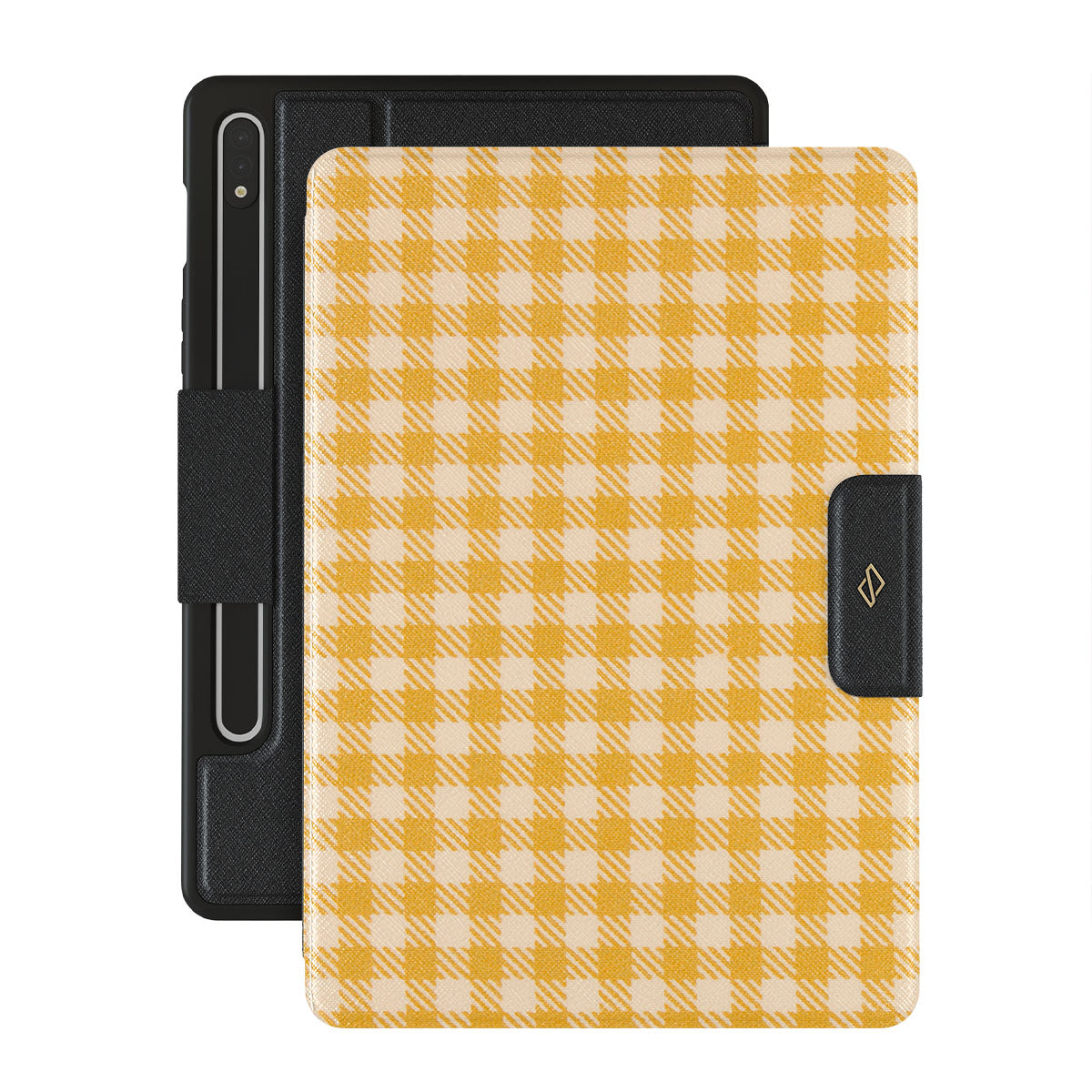 Always fashionable and always inviting, the Preppy Vichy fabric returns in our Tuscan Sun Samsung Galaxy Tab S9+ folio case. The brightness and warmth of this enchanting yellow plaid design indeed remind us of the always generous Tuscan Sun. You can add a piece of this playful squares pattern with you while keeping your Galaxy Tab out of harm's way!